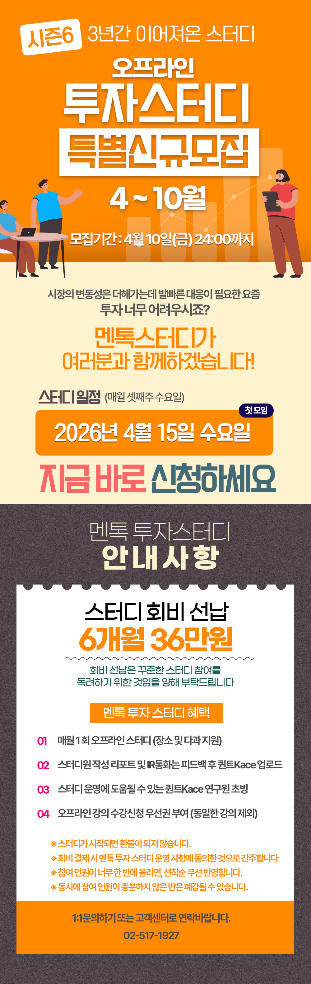 멘톡 투자 스터디 신청하기(클릭) https://forms.gle/Z3VhVHjhUqAbMwLQ9